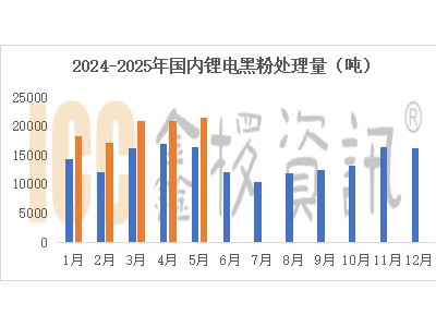 2025年5月國內(nèi)廢舊鋰電池黑粉統(tǒng)計(jì)處...